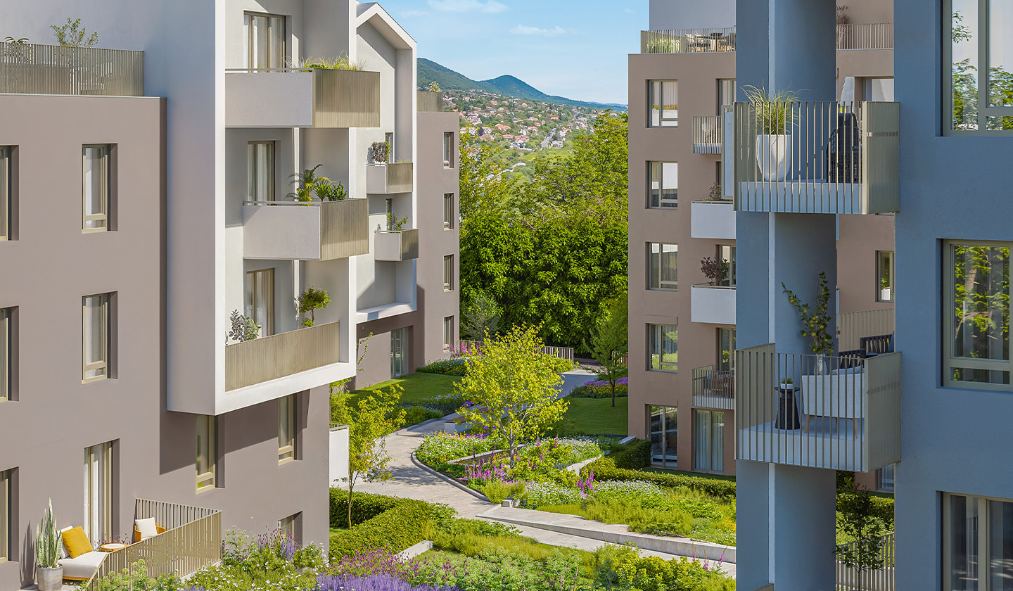 Amphora Garden is a modern residential park in the heart of District III, where the proximity of the city center and the tranquility of nature truly go hand in hand. As you step out onto the balcony in the morning, you are greeted by the view of the Óbuda hills. This part of District III is special because it combines historical atmosphere with modern urban life.